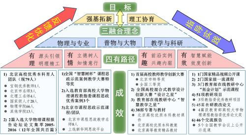 针对基础物理课①缺乏跨学科专业协同机制、②缺乏课程思政的深度融合、③缺乏对学生的吸引力和创新引领及④缺乏与精品资源有效融合等突出问题,团队在13项省部级以上教研项目(其中3项获评优秀教研项目)的支持下,依托物理学国家双一流建设学科和应用物理学国家级一流本科专业建设点,通过面向全校40余个本科专业(覆盖理科、工科门类)每年约3000名低年级本科生,构建了以大学物理系列必修公共课和普通物理系列专业核心课为主体的课程群。通过“普物与大物”“物理与专业”“教学与科研”三个维度的深度融合与创新,形成“三融合”理念,贯穿课程群建设始终,实现课程间的交叉贯通和协同互补,进行了“四有”(有理有情有趣有效)新生态教学创新与实践。